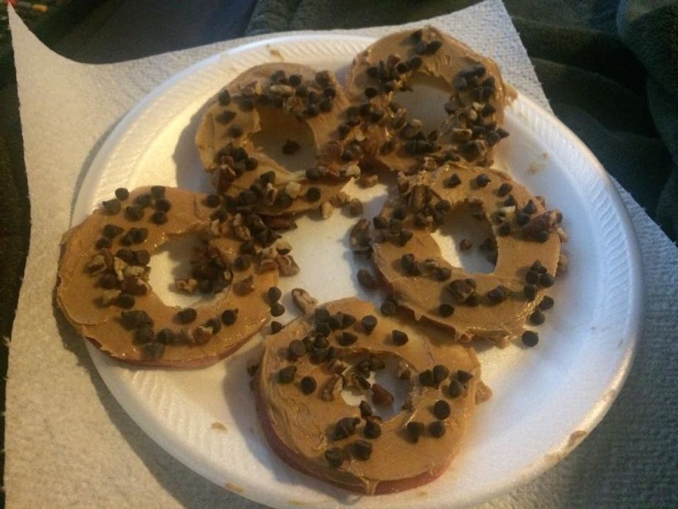 Apple Cookies are a healthy twist on the original cookie! They still have the sweetness and crunch but are incredibly healthier for you. I used a knife to cut the core out and almost accidentally cute the apples in half (oops), so be careful cutting the core out. These are great for a fun snack!