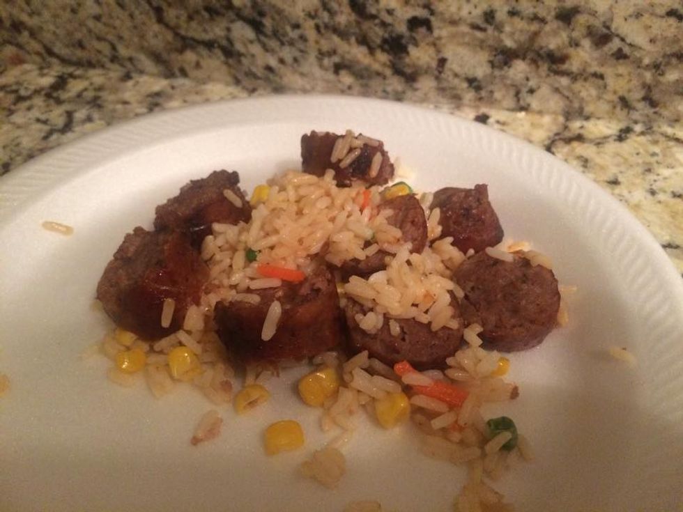 Sausage with rice and vegetables is a great meal! It's easy to fix and only calls for two things from the grocery store. You'll most likely have leftovers if you're eating alone, so there's a plus, too!