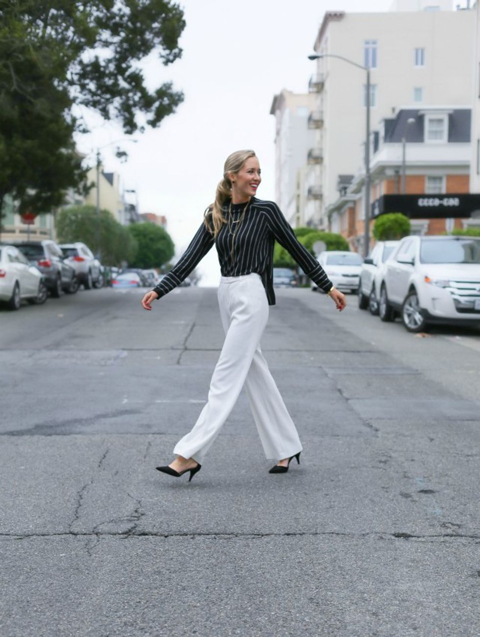 Let’s get an up grade! There are so many ways to rock a pinstripe frock. Breaking up the suit is the best! I love paining the pant with a fun blouse, or the jacket with a simple pair of jeans to have a more casual feel.