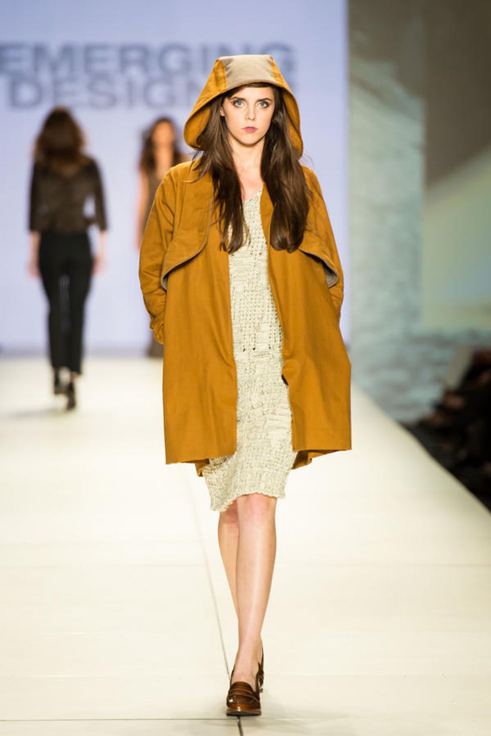 Finally, a designer that works comfort into her styles. One thing that caught my eye with her collection was how comfortable and applicable it looks for everyday where. From the office, to the bar, to running to my car in the famous April Showers, this collection works for everything. Her use of neutral colored crochets in her dresses, paired with uncomplicated accessories like this mustard rain jacket brings a lighter spring look to the outfit without it looking like an Easter egg. Paired with buckled flats and minimal make-up, the dress speaks for itself and gives off an effortlessly polished look. We can expect to see similar looks anywhere from summer internships to the beach.