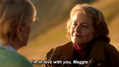 Though their relationship is only featured in the second season of Broadchurch, Jocelyn and Maggie still definitely deserve a spot on this list. It's an older wlw couple, who have been friends forever, but just didn't quite make the leap to lovers until later on in their lives. It's a heartwarming and bittersweet with their final scenes together emphasizing both how they missed out on years that they could have had with each other, and that it's never too late to come out, start something new, and give yourself a chance at happiness.