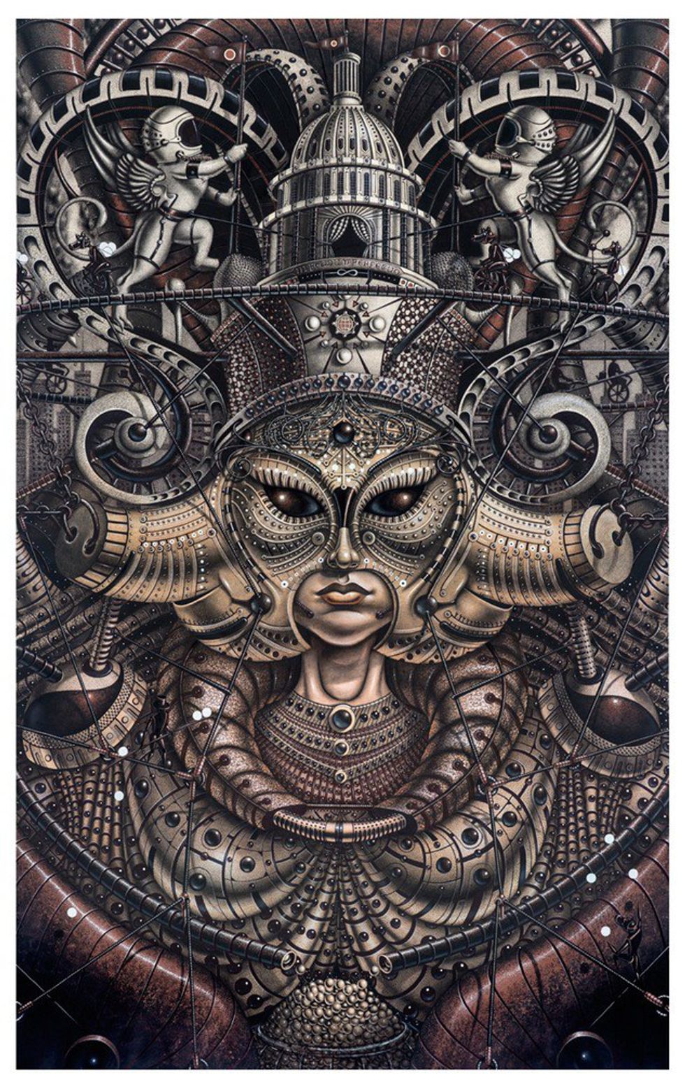 This is just one drawing out of three by Samuel Gomez. The three of them together raise questions about today's society and address the concerns Gomez has about the world.