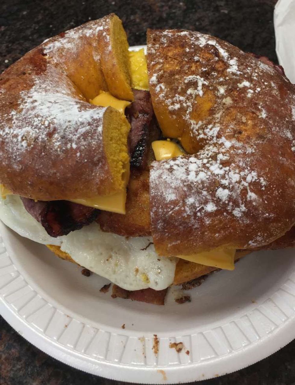 My favorite dish: turkey bacon, egg, and cheese on a french toast bagel