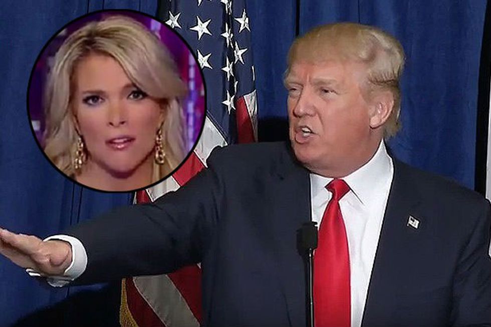 This quote was Mr. Trump insulting Fox News anchor Megyn Kelley for questions she asked him during the GOP debate, which Fox broadcasted this past summer. It's good to know his head is in the right place.
