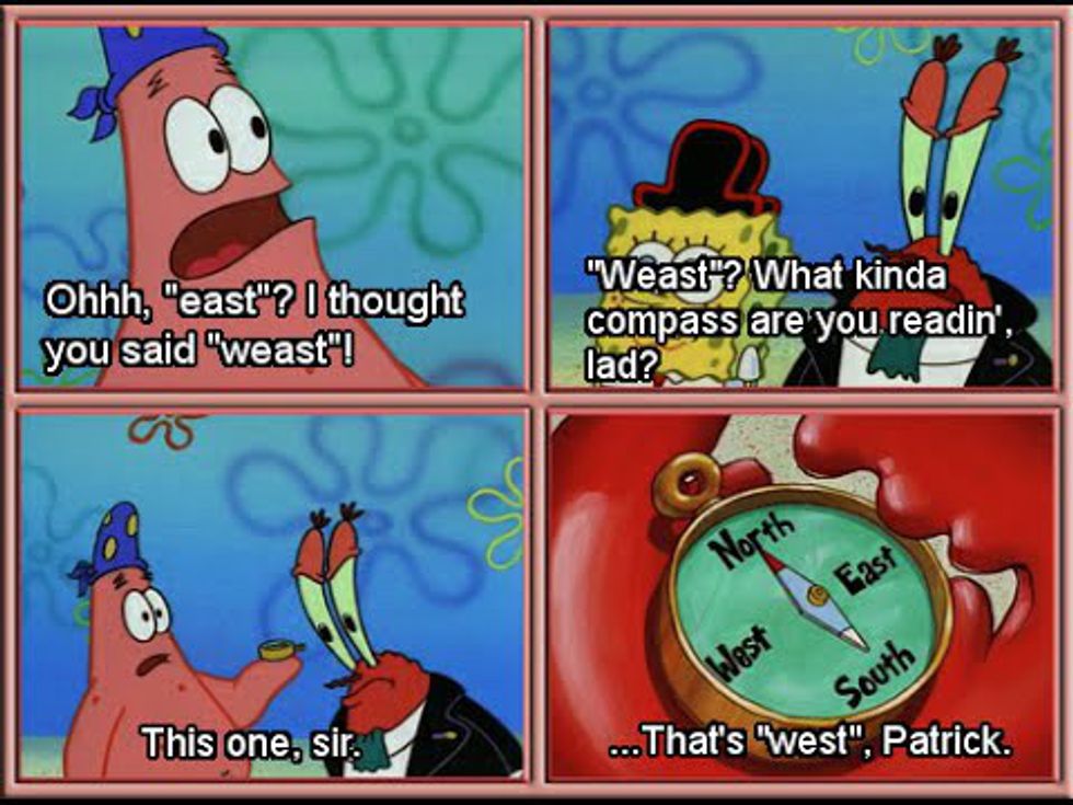Mr. Krabs becomes a little carried away with SpongeBob and Patrick's game, which is based on a real treasure map. Patrick gets them lost by failing to read a compass. The Flying Dutchman gives SpongeBob and Patrick "two gold doubloons" and Mr. Krabs a "plastic" treasure chest.