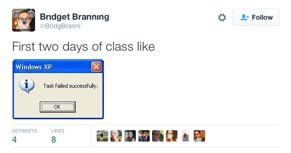 I'm sure as the semester progresses, tweets will become funnier and more relatable. Good luck everyone, may you survive this semester with minimal mental breakdowns and awesome exam scores.