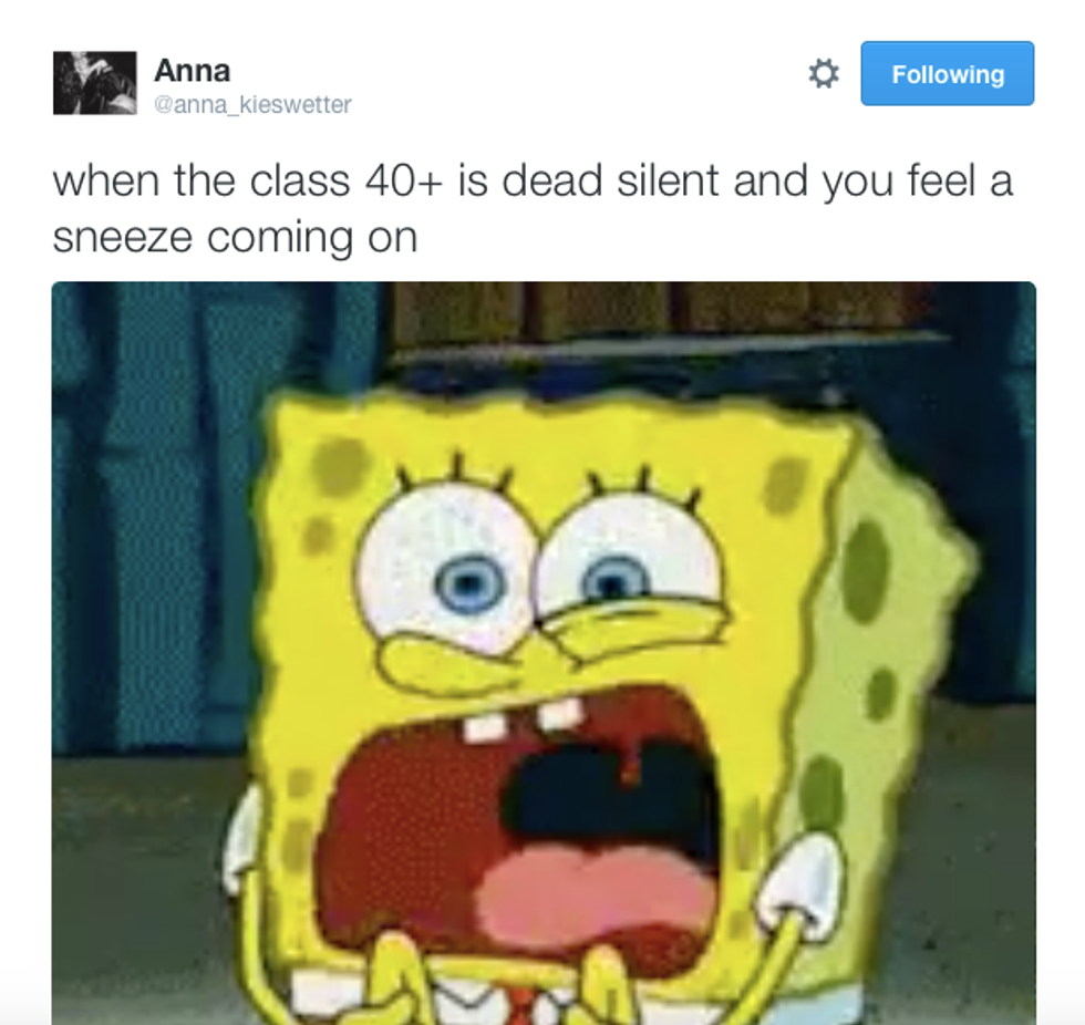 12. Nothing better than sneezing and everyone turning around to stare at you.