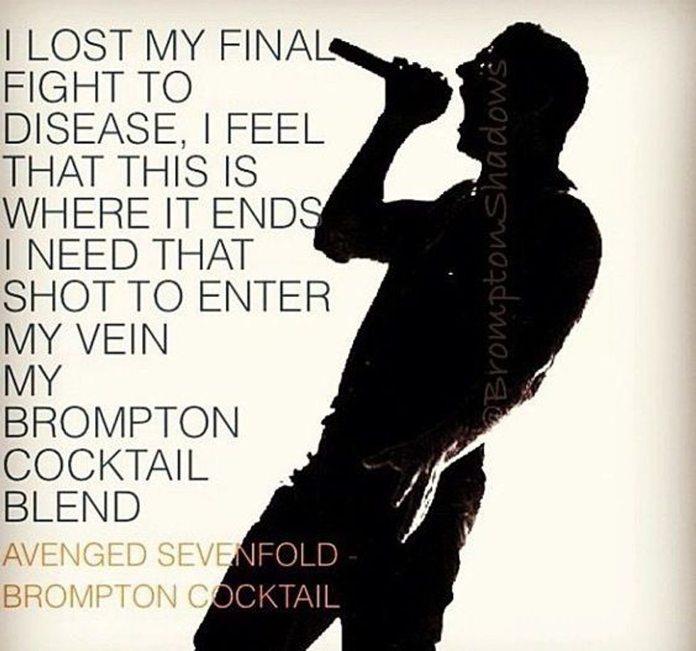 But before I leap into my top 20... let me explain who these boys are to the noobs. The boys began in Huntington Beach and different members than the current ones. But to begin, there is the lead singer, Matt "M. Shadows" Sanders; the lead guitarist, Brian "Synyster Gates" Haner Jr.; the rhythms guitarist, Zacky "Vengeance" Baker; the bassist, Johnny "Christ" Seward; and drummer, Jimmy "the Rev" Sullivan. The Rev died before the completion of their album Nightmare and was later replaced by Arin Illerjay who was then replaced by Brooks Wackerman.