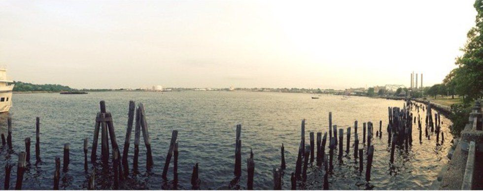 The East Providence Boat Yard, otherwise known as Bold Point Park, sits right across the bay from Providence and India Point Park. The view is so nice, you can sit in your car and star at the skyline for hours (like I've often done after work!) There's also a small path you can walk down to sit by the water and go fishing or read a book, and a short pier where the boats load up into the water that is really peaceful to sit on in the evening!