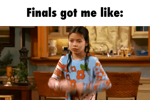Obviously, we need to study, study, study! This is going to be the best way to make it through all your finals! Find out the best ways that you retain the information for your classes and study. Whether it may be reading the book straight up, meeting with a friend, or rewriting all your notes. Figure it out now and start now! We only have a few days left…