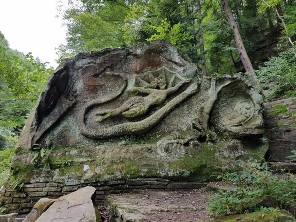 This well-known picnic area has a less well-known backstory. Henry Church, a self-taught rock carver and local blacksmith, carved the rock in 1885 to pay tribute to the American Indians massacred throughout history. Church would supposedly stand at the pulpit, preaching sermons to the spirits of natives killed by settlers. Despite its controversial history, the landmark stands as a dedication to the tribes' plight, nestled along the peaceful Chagrin River.