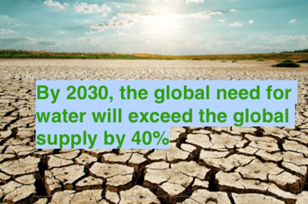 That's less than 15 years away. The world is already breaking out into war over the scarce supply of oil. Can you imagine how bad it will be once we run out of something so precious as water?