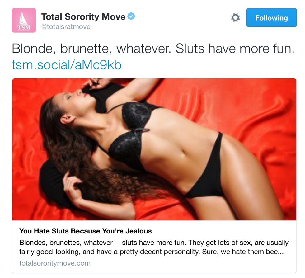 Sorority women are sluts? All right, yeah, cool. Thanks, TSM!