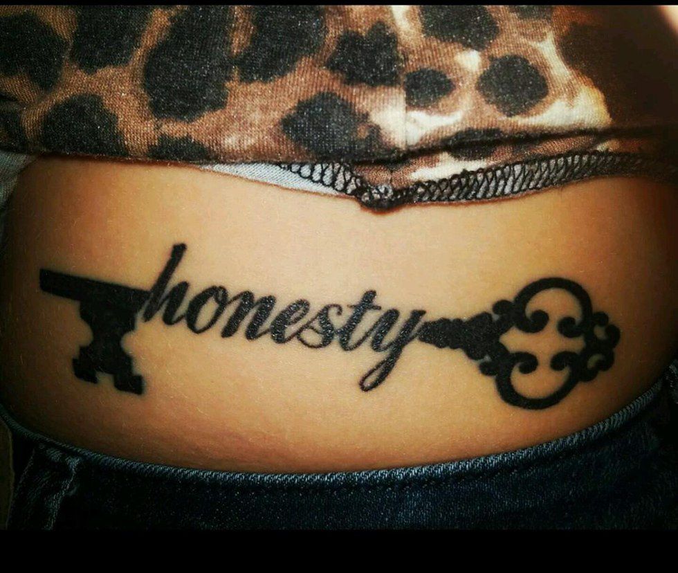 "I have been thinking about getting a tattoo since I was 15. People say you haven't really thought about it a lot at the age of 18 but I did. All of my immediate family members have tattoos so I knew they would support me in whatever I chose. I actually asked my daddy a lot of questions before I got mine, just to make sure he was agreeing and supportive of my decisions. I wasn't sure what to get. It's crazy to say I found my tattoo on Pinterest but I searched many things. I wanted something feminine and I plan on getting more. I thought that this idea of the word "honesty" in a key was perfect for me, considering I'm quite honest. Very blunt actually, some may even call it rude. But the deeper meaning behind my "honesty is key" tattoo is that no matter what challenges I encounter or obstacles that I face, I will remember to be honest." -Nichole Ledford
