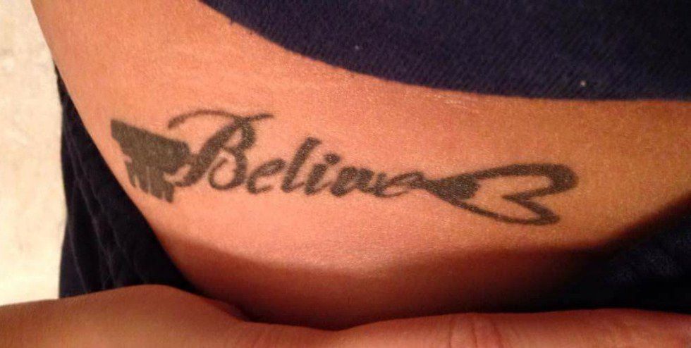 "For me it's a means of self expression. Mine is on my hip so it is covered up most of the time because mine is simply a reminder of a value I carry with me throughout life. It's a key with 'believe' written in the middle because believing in myself is the key to succeeding in all things I do. To put it plainly, it is a reminder to never stop believing in myself." -Faith Anderson