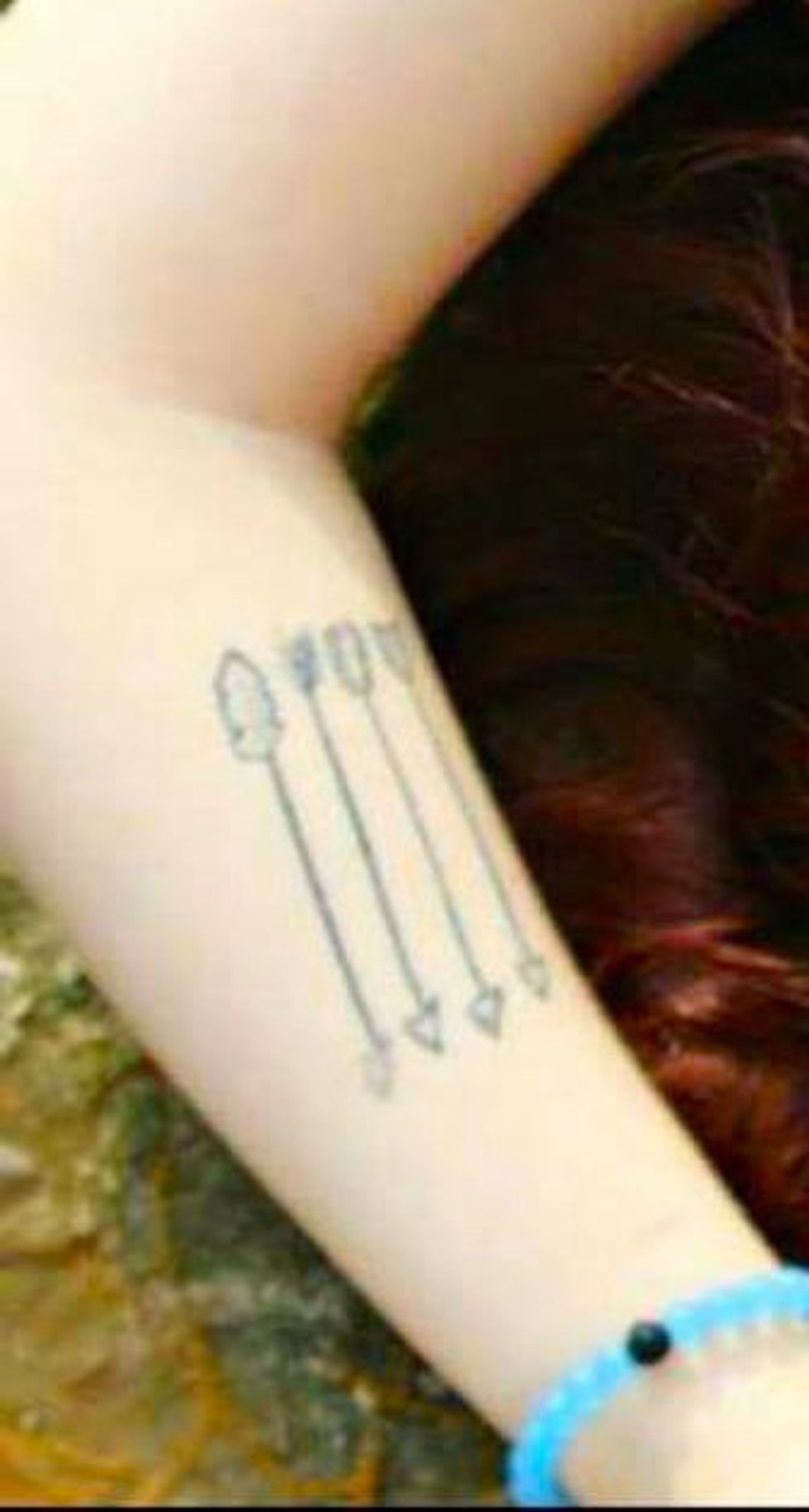 "My arrows I got soon after my daddy passed away. Arrows can only go forward by being pulled backwards first, so I see myself as the arrows. Yeah, I've been through a lot and I've felt pulled back many times, but I know that by going through the drawbacks, I'm just going to go farther." -Cedes Harris