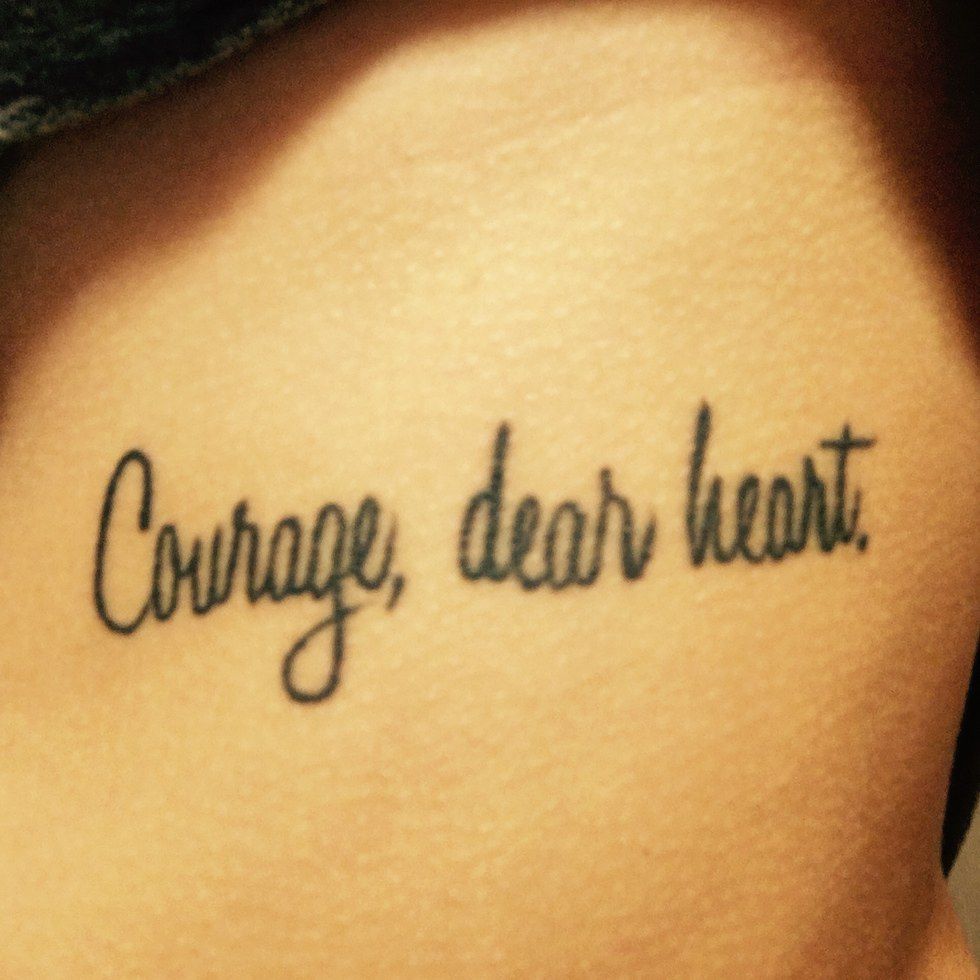 "My tattoo is a quote from one of my favorite authors, C. S. Lewis. The quote comes from his book "Voyage of the Dawn Treader" and is parallel to a Bible verse from Chronicles 28:20. I am a very strong willed and independent person who constantly tries to solve problems on my own. This tattoo is a constant reminder to step back, silence my own voice and listen to the voice of God. No matter the trial or hardship, the Lord provides me with hope and courage to deal with any obstacle that presents itself." -Hunter Bowen-Pollock