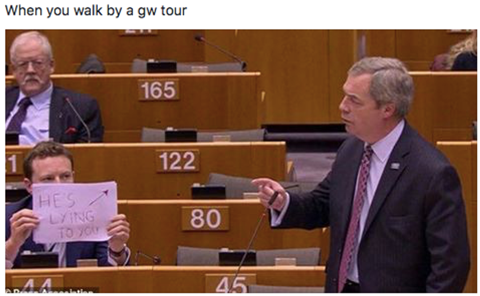 I am not sure if this problem is isolated to only my campus, but I would imagine that it exists on other college campuses too. But students despise tour guides on our campus. I think most of the student body’s feelings towards tour guides can be summed up by this one post on our meme page: