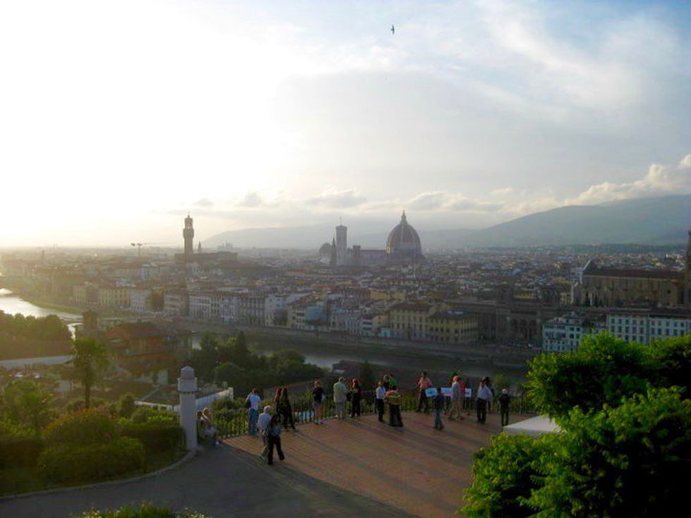 When you hit the river (Fiume Arno), take a right and then a left when you get to the bridge with the buildings on it. That’s the Ponte Vecchio. It used to house all the butcher shops way back in the day, because it was easy to simply dump the garbage into the river, but it was almost bombed away in WWII. Now, it's home to all of the gold shops, and almost always, there’s a musician playing. Meander your way across the bridge and make your way down the street there. I do not remember street names, so just trust me on this. On your right will be the Palazzo Pitti. To gear up for the massive grounds at the Pitti, eat at this tiny little restaurant that looks more like a wine closet but has the best tagliatelle dish with fresh tomatoes I have ever eaten. My mouth is watering just thinking about it. Go into the Palazzo Pitti, or at least go through it and get to the Giardini di Boboli (Boboli Gardens). It sounds small, but it’s seriously a huge park with fountains and statues, and it’s gorgeous. Just gorgeous! I could have spent a week in there. If that’s not your gig, that's fine too. Just make your way to the Piazzale Michelangelo. To get there, you just have to walk along the river to the east, or upstream, until you arrive at an old city gate. From there, it’s an uphill trek, but so worth it... and I did it in sandals. Bring food, bring booze, and sit on the steps up there and stare at the city. Bring friends. It’s a grand old time.