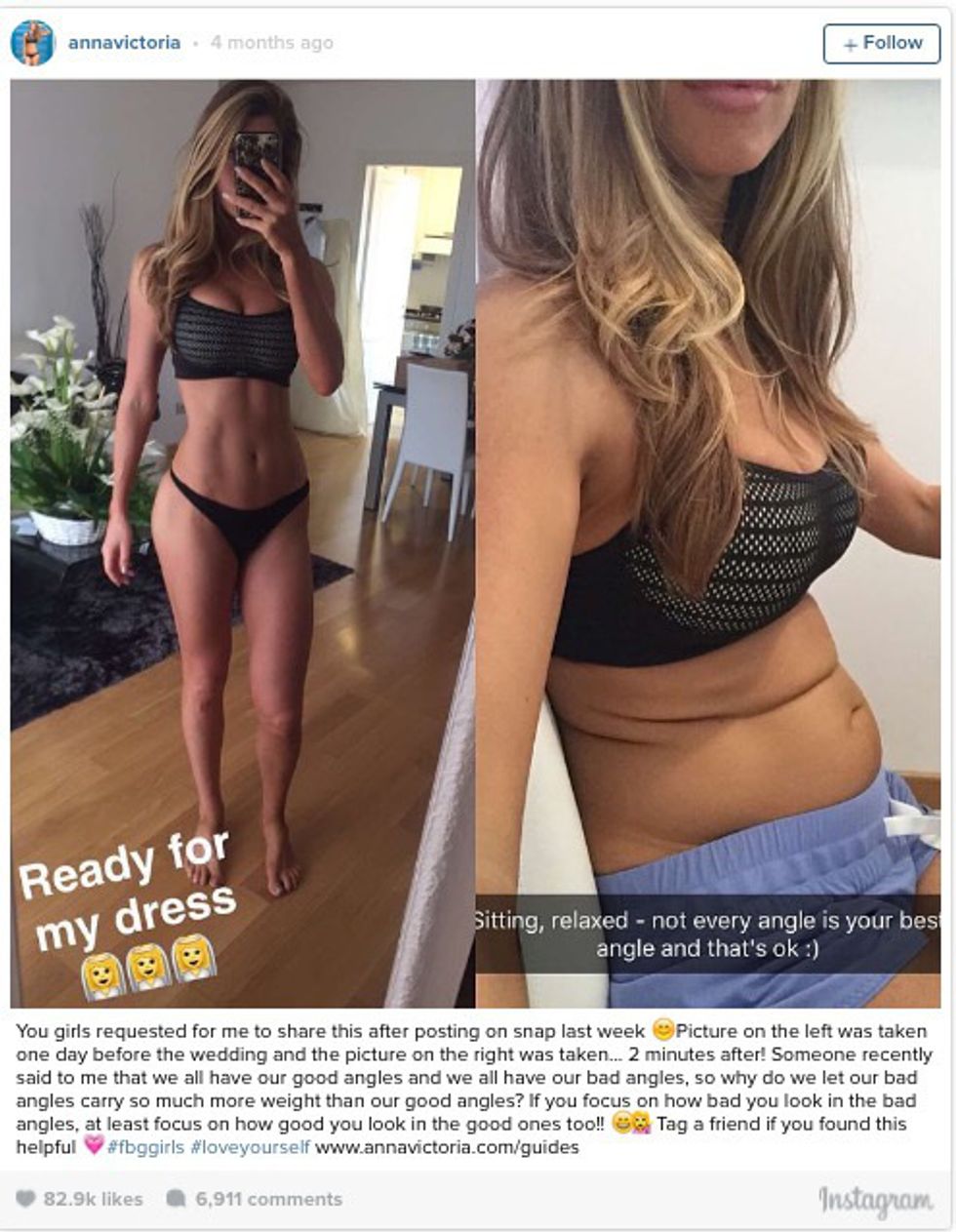 I'm guilty as much as anyone of showcasing a life of only highlights. Scrolling through my Instagram you'll see a girl perfectly made up, posed, and laughing with friends. But, the truth is, we shouldn't be comparing ourselves in a virtual world where reality is altered and everyone is trying to portray their life as something it's not.A recent trend has taken over the Instagram fitness community which shows how something as simple as one's posing can completely alter the look of an image and an Instagrammer's body. As a means to celebrate body positivity, many people in the fitness community have posted before and after shots to show the power of posing.