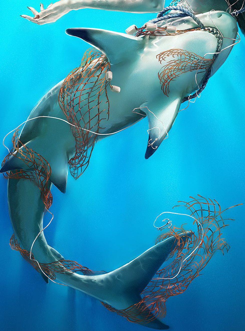 When fishing, people tend to just cut their lines and leave the hooks when they hit a snag such as a large pile of seaweed. This is extremely dangerous to any creature in the ocean. They swim through the seaweed and get snagged on the hook and then permanently have a hook in their body. They could also try to eat the seaweed and end up ingesting that line or the hook causing them so much pain and maybe even death. The same thing goes for nets that are left in the ocean as well.