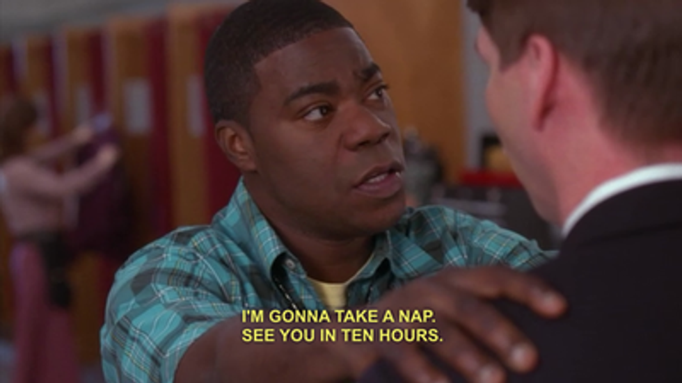 Tracy Jordan is known for being the loose cannon of "30 Rock." He's unreliable and often gets involved in ridiculous situations. Even though he tends to make the lives of the other characters -- mainly Liz Lemon -- difficult, but even then he's extremely lovable and caring. Although Tracy often says and does off-the-wall things, he actually describes the life of a collage student pretty well.