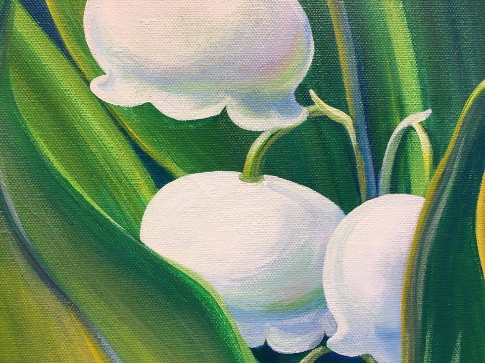 We currently live in a magical age of art. The fine, traditional art forms full of paint, chalk, charcoal, and more are still strongly represented and are admired worldwide. From famous older works like the Mona Lisa or Starry Night, to newer, maybe not yet famous pieces with gorgeous, vibrant colors, maybe made by a neighbor or friend. These traditional medias draw us in with their varying textures and stories. Some can be as tall as yourself and others so small you have to use a magnifying glass to see the finer details. I saw both this week at a show. The following image is a detail from one painting titled Lily of the Valley by Wendy Neckers.