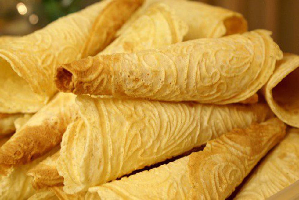 A waffle cookie found in Norway as well as Germany. It's similar to the Italian cookie pizzelle and often filled with whipped cream. When the cookie is hot and pliable, it's wrapped around a cone-shaped rolling pin, which gives it its iconic shape.