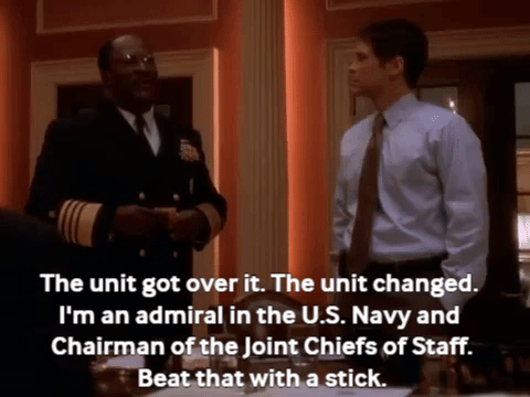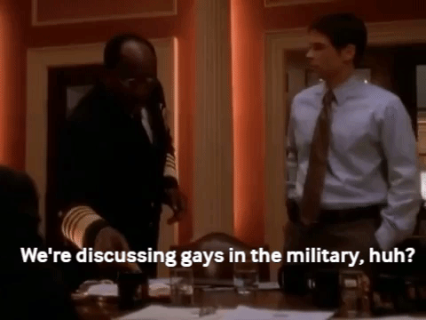 I don't think anyone said it better and more concisely than the tv show "The West Wing". For any Gen Z-ers who might not know the show, it's about the senior staff of the White House's day to day lives. In this particular scene, they've been arguing with two representatives from the military about "Don't Ask, Don't Tell". The episode came out before it was repealed, and the two military representatives seem to be firmly against repealing it, so the discussion seems to be going nowhere. Just when the senior staff is about to give up, the Chairman of the Joint Chiefs of Staff, Admiral Fitzwallace, stops by to put in his two cents.