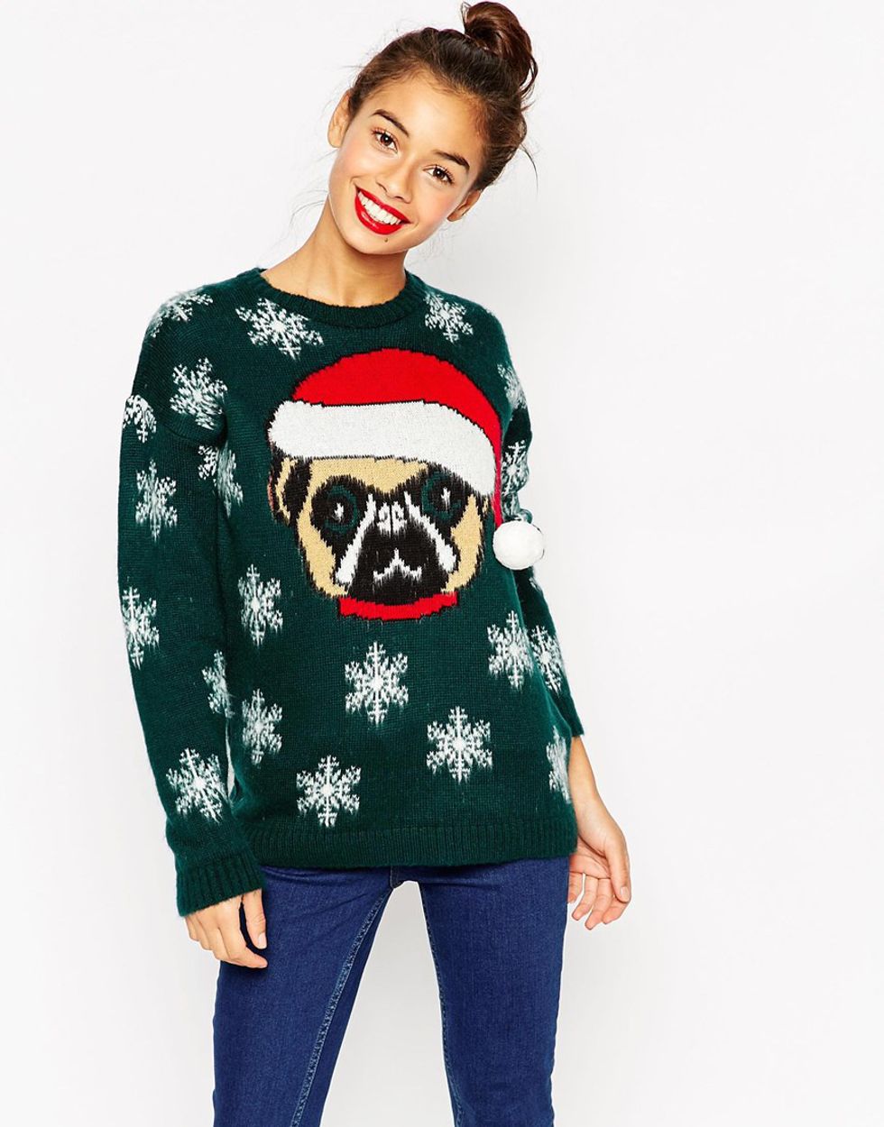 First, I could keep all the pizzazz that is embodied in the ugly ugly holiday sweater. Rocking this Holiday sweater with snowflakes and a pug is charming, funny, and right in spirit with the joy of the season. This choice is basically the adult-size of my favorite childhood sweater.