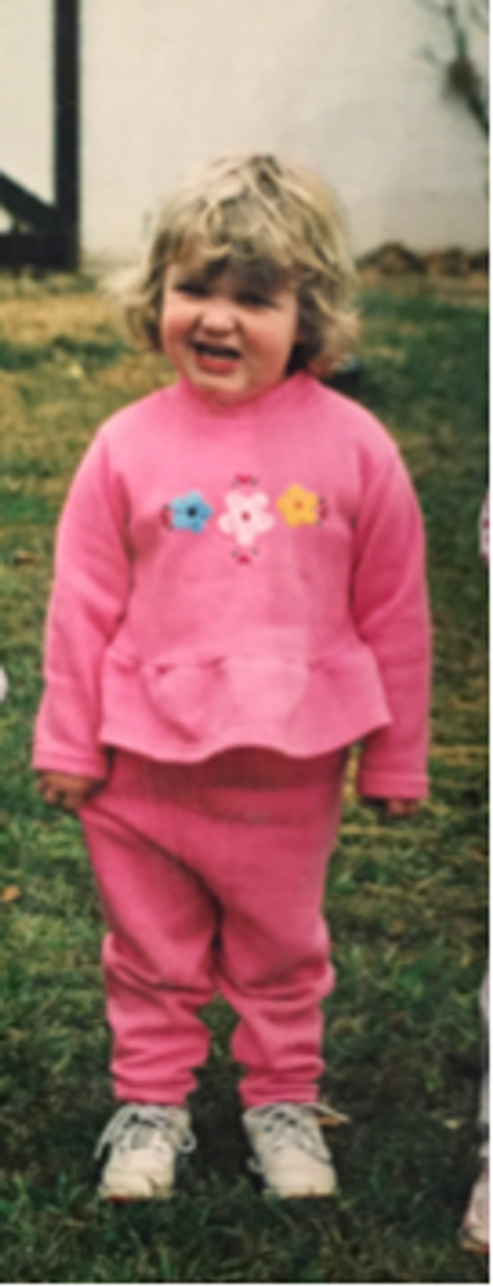 Monochrome is, admittedly, a hard look to pull off. It's especially difficult to do when it's monochrome, bright pink sweats. I pulled off this look pretty well at age four, but I'm not so sure how well this exact look would work out for me at age twenty.