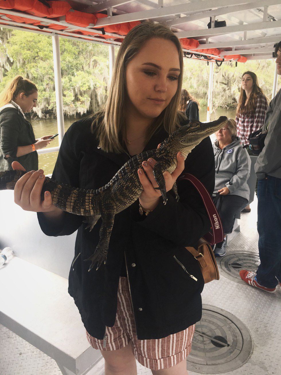 On that day we also went out to the swamps with Airboat Adventures Tours. We rode a boat through the bayou and saw some alligators in their natural habitats. We also got to hold a baby alligator named Tri.
