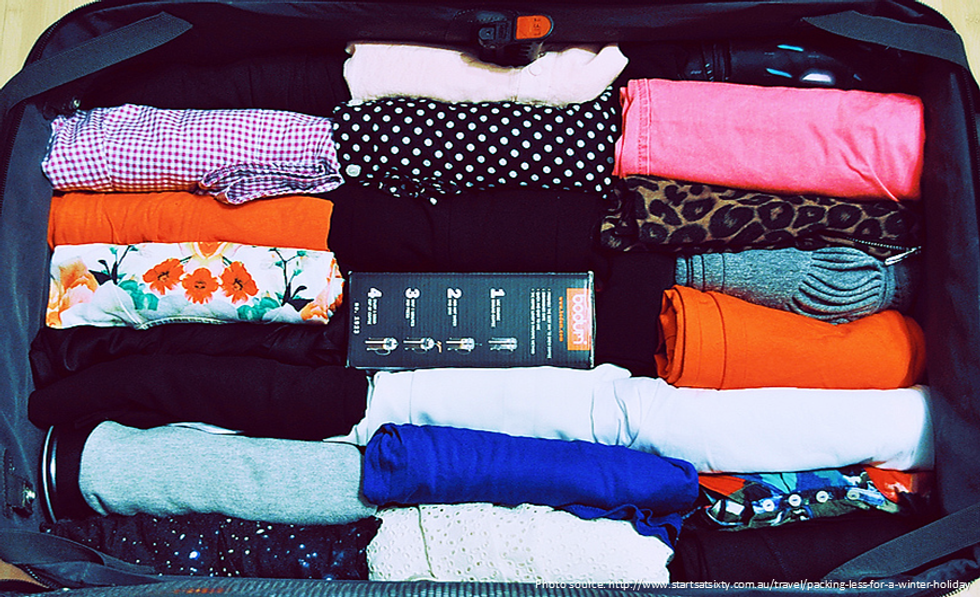 If you absolutely must pack a large suitcase, practice and perfect this travel tip! Rolling your clothes properly will ensure wrinkle free, mess free clothing PLUS twice the space. Pack wisely and you'll be able to fit your whole family's holiday wardrobe in just a couple of suitcases, which saves a ton of time and money (unless you're flying Southwest).