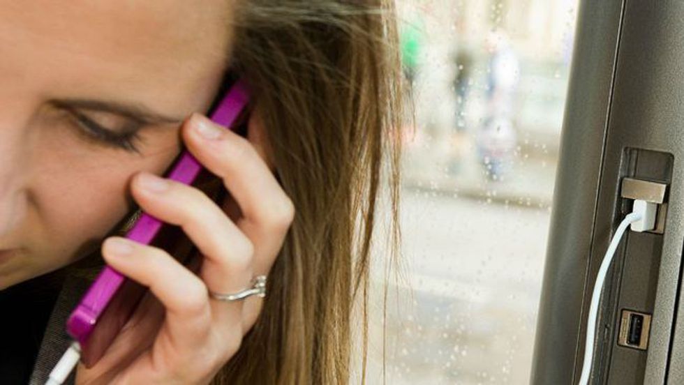 Desperate times call for desperate measures. If there are no open outlets available, most screens will have a USB port ready for you to juice up with. BONUS: These are usually in prime seating areas.