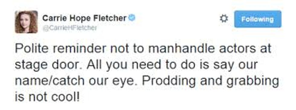 In the recent years there has been countless reports, both in the film and theatre communities, of the treatment of actors by the general public. Popular British YouTuber Carrie Hope Fletcher has reported in multiple videos on her channel on how she has been experiencing anxiety over leaving through the stage door on account of acts of violation of safety. Some of these acts include grabbing and pushing her for photos, taking her phone, and yelling obscenities and insults for not staying long enough to see everyone or not coming to stage door at all.