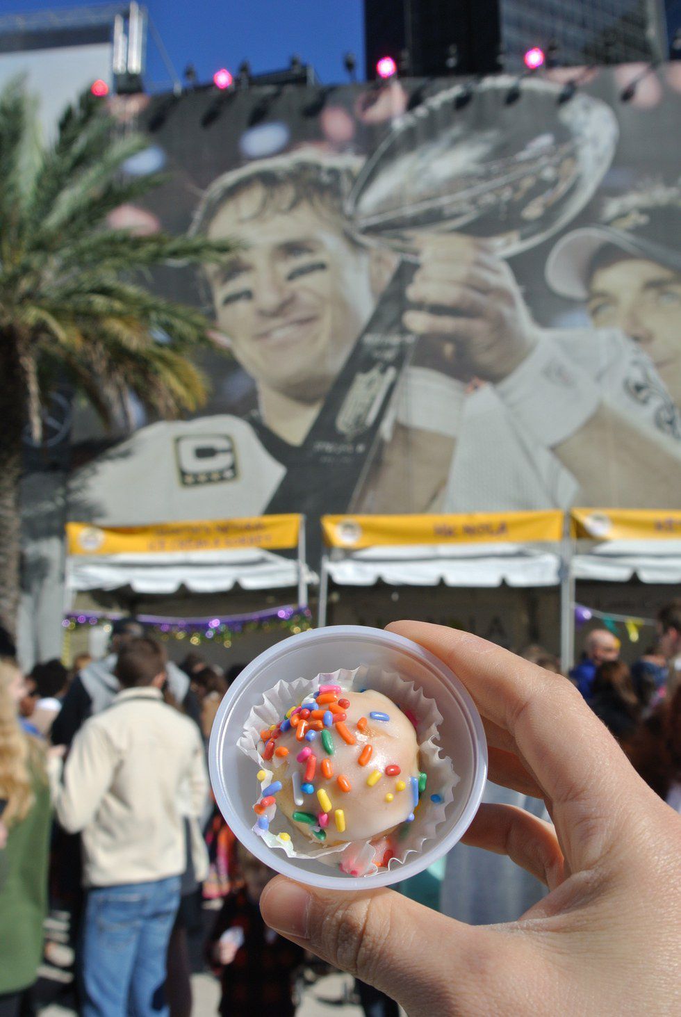 Of course, this festival had some pretty awesome live music. Live music plus king cake equals a very happy crowd. One of the best parts about this festival was the vibe of the crowd. Nobody was pushing and shoving. Everyone was just light hearted, feeling good, and enjoying a beautiful day in Champion Square with a mouth full of king cake. I definitely plan on trying the king cake burger next year because it sounds just crazy enough to work.