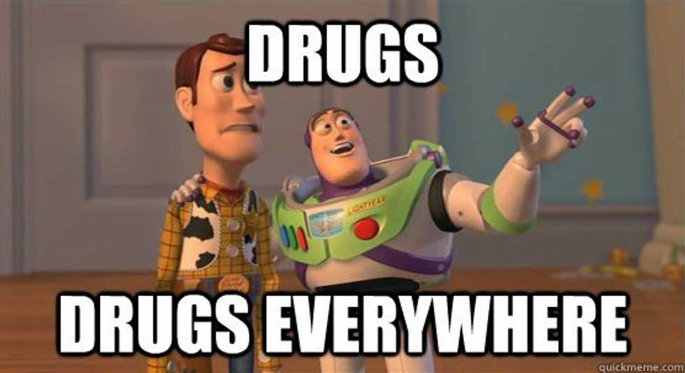 Time and time again when discussing gun control people will suddenly throw up their hands in an outrage and compare it to drug control. They bring up the fact that our drug control measures have failed, that people still use and sell drugs, and that heroin usage is a rising epidemic in America. Just as this meme is doing, it's an attempt to make gun control seem silly, pointless, and a waste of time for America. But I wonder, if we don't keep drugs illegal, if drug control has failed us as spectacularly as this meme is making it seem, what is the alternative to it? Is there an honest belief that the government should regulate drugs, sell them over the counter like cigarettes and soda? Should we get written promises from every drug buyer that they're only going to use the heroin for recreation and that they have no intents of abusing it? Should every drug user be allowed to carry meth openly in public with the proper government issued licenses? Should we allow drugs around children? Hell, should we allow children to use drugs under the supervision of a responsible adult drug user?