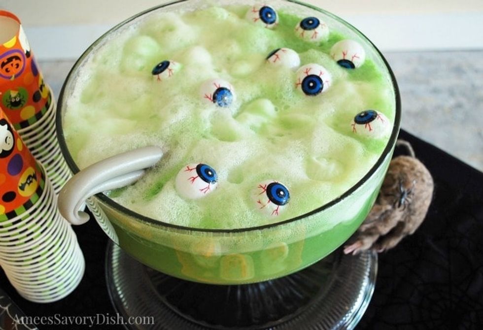 This concoction is made with sherbet, ginger ale, pineapple juice. Its a fruity green drink that others would love to try. You can even add Halloween themed props to add some creativity.