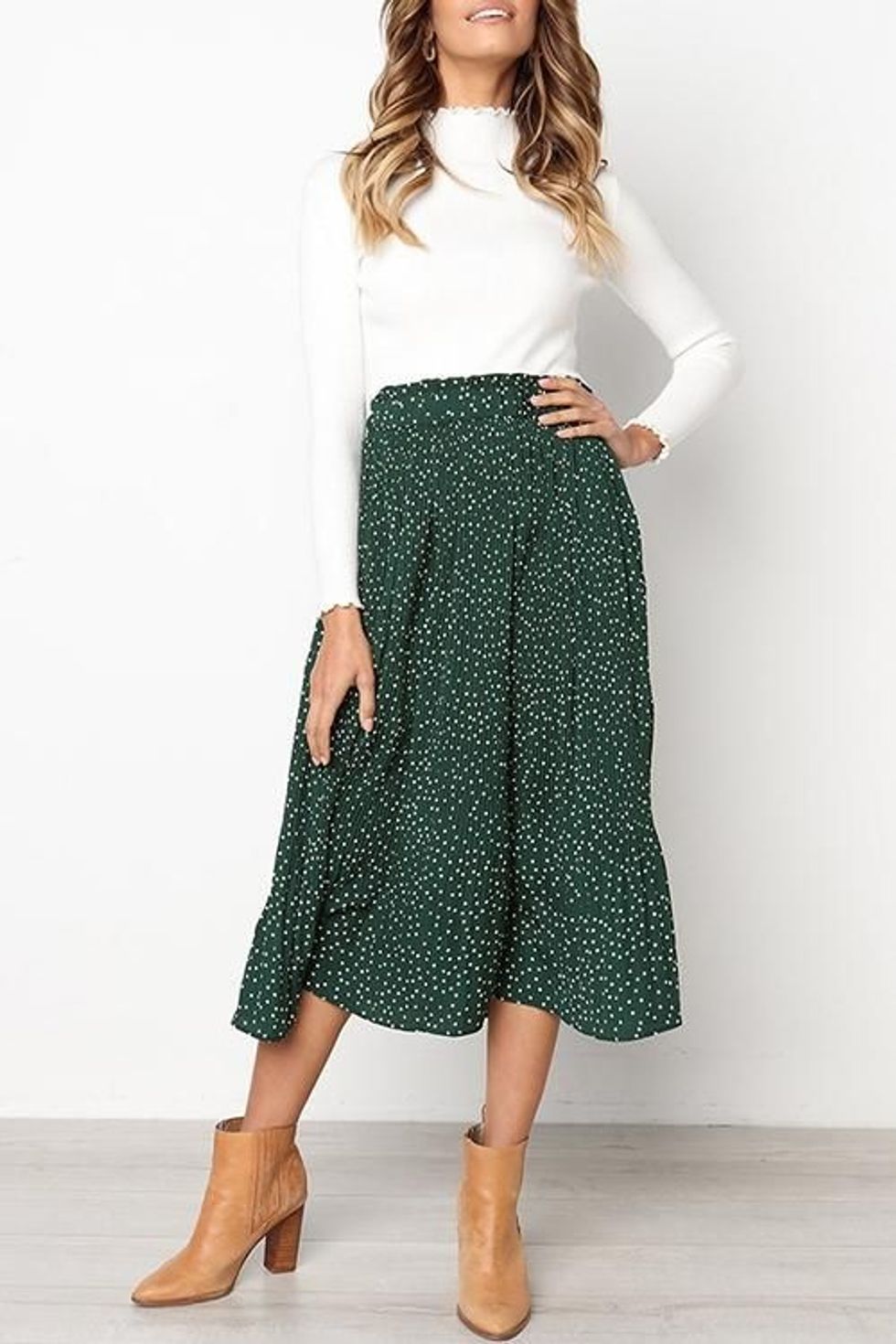 This length of skirt is especially great for fall, since they keep you warmer than a mini skirt. I love the look of these with a band tee or a chunky sweater.