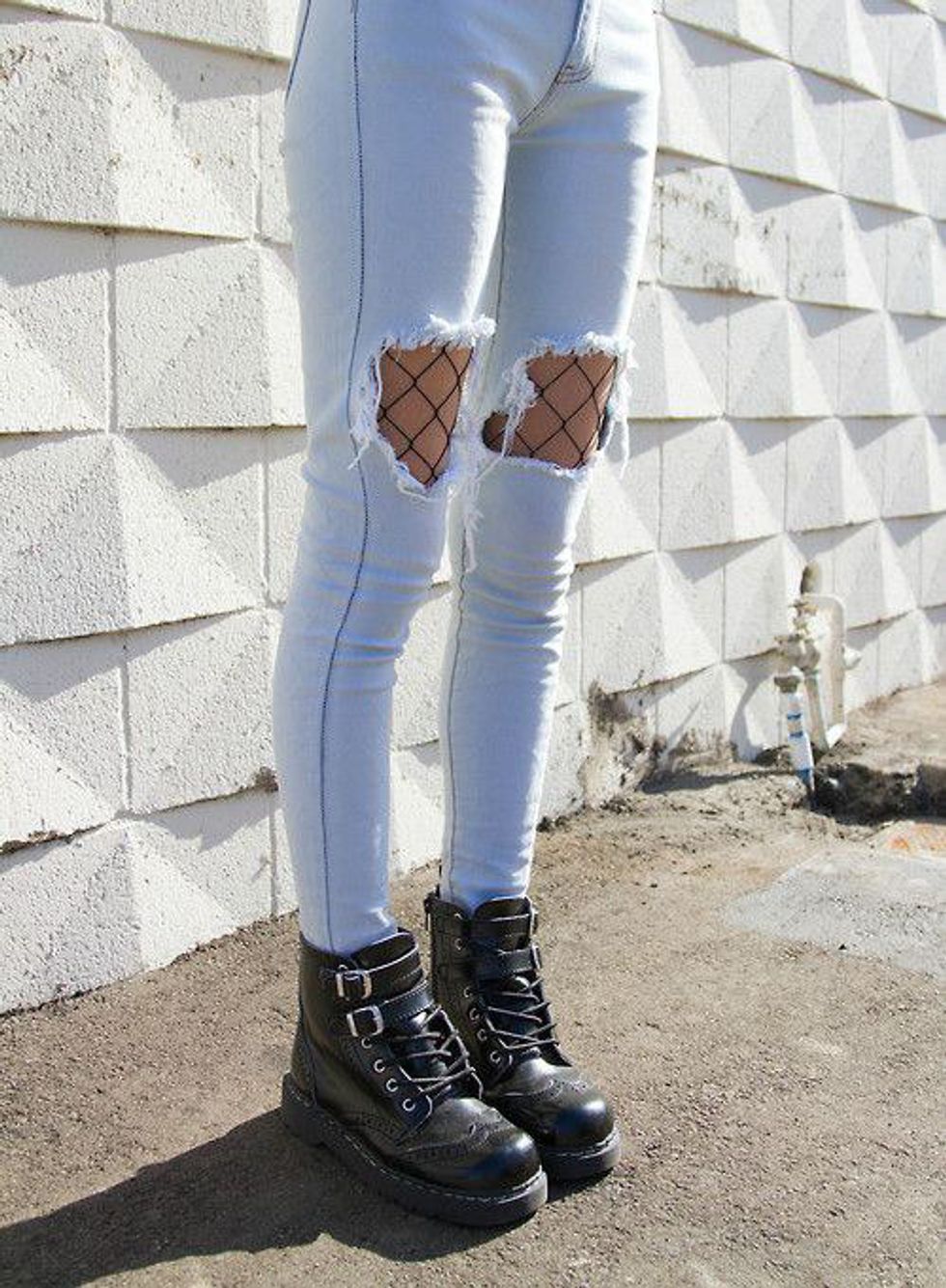 It's been so long for me I didn't even remember I still owned a pair. But as seasons come and go, fashion trends are brought back with a fresh new take. Fishnets are back, and not just for costume wear. Girls everywhere have started wearing these tights under their ripped jeans. Genius! You can achieve a whole new look just by adding a simple accessory underneath your jeans. So go ahead and find those long lost tights, you'll kill it!