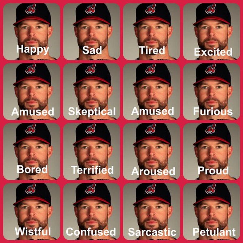 Not being able to tell whether Corey Kluber is excited, nervous, happy, skeptical, or amused for Opening Day.
