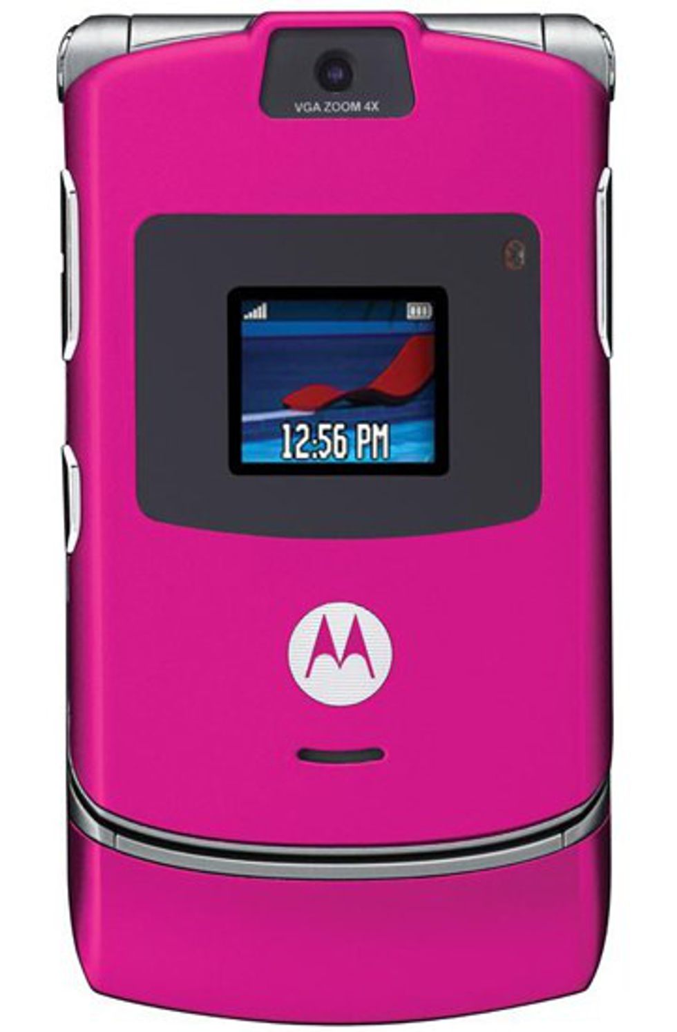Motorola Razr- the cool edgy older sister to the flip phone. The Razr pictured here is the betchy edition aka the equivalent of the rose gold iPhone.