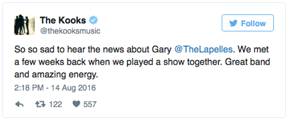Tributes poured in from around the music world to show their support for The Lapelles. Bands like Franz Ferdinand, Circa Waves, The Kooks, The Jesus And Mary Chain, Blossoms, Baby Strange, The Amazons, The Strypes, Neon Waltz, Vant, The Vryll Society, The Sherlocks, Sunset Sons, and more showed their support for the band on Twitter.