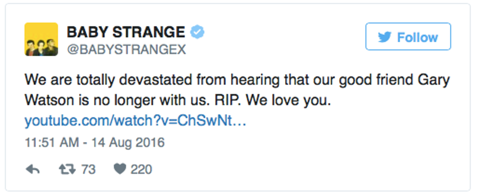 On Thursday, August 18, there was a tribute concert to celebrate Watson's life with all proceeds going to his family. There were performances from fellow Glasgow musicians: Baby Strange, White, Declan Welsh and The Rockalls. There is also a crowdfunding page that was started for anyone who wants to donate to the family or for anyone who couldn't make the concert. I encourage everyone to donate, even if you've never heard the band's music until today or even if you never knew Gary personally.
