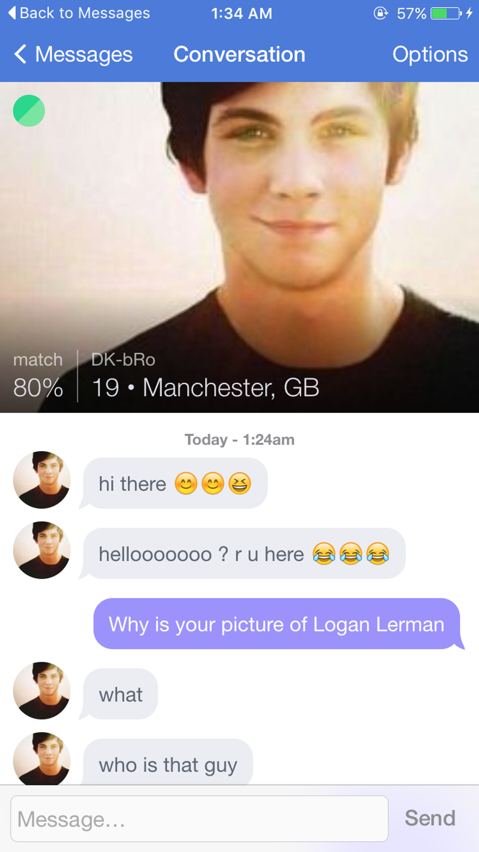 Poor thing had no idea Logan Lerman is one of my favorite actors...