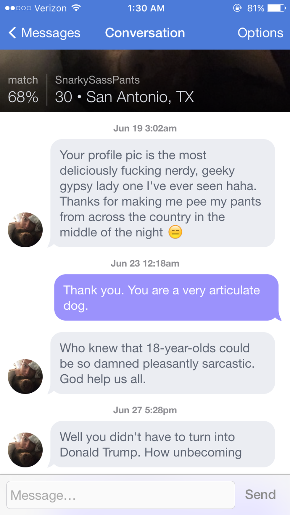 Unfortunately, ignoring another snarky compliment (I think it was a compliment??) got me compared to Donald Trump.