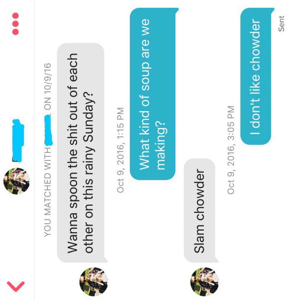 So naturally, in response to sexual remarks I'd receive from "charming gentlemen" I matched with, I'd dodge the bullet.