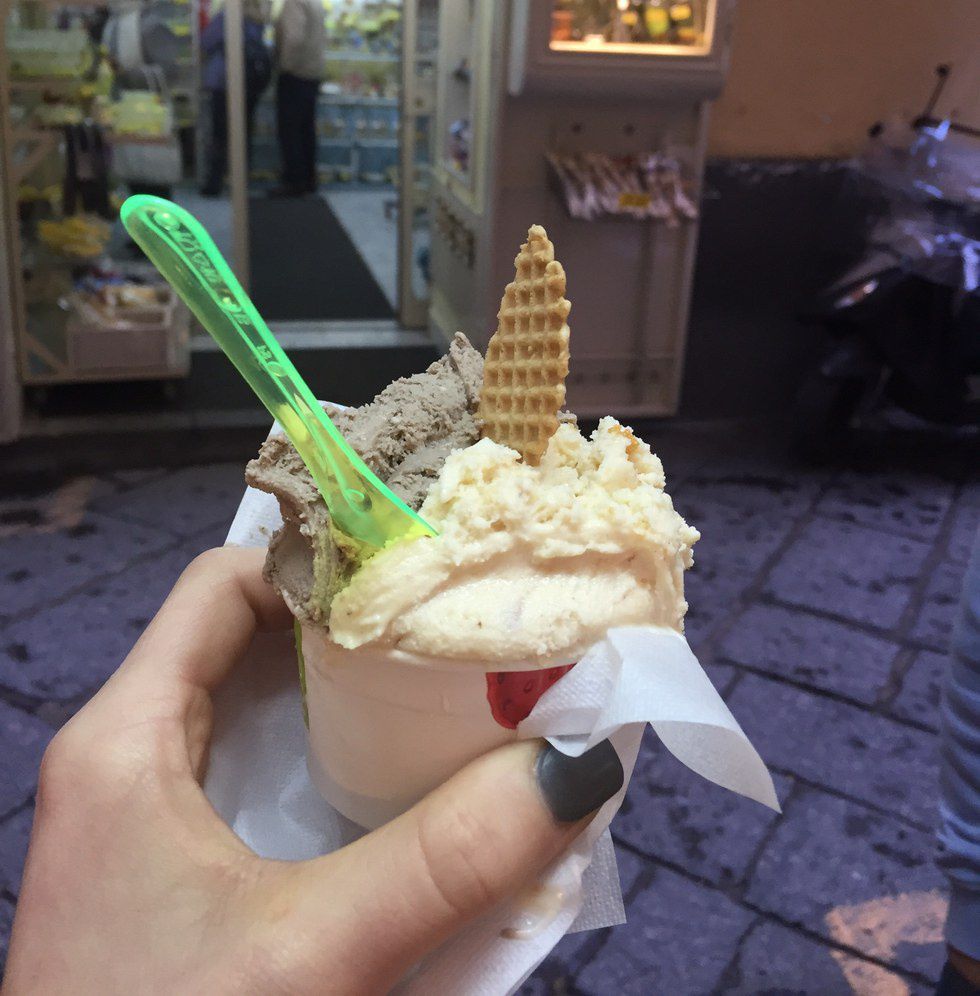 Every single street corner contained a gelato shop. For those of you who are not completely positive as to what gelato is, it is an Italian ice cream. It has a richer taste than ice cream but tends to be lower in calories. I tried as many flavors as I could: mango, limone, crema, stracciatella, bacio, caffè and many more. The only way I allowed myself to eat it every day -- sometimes twice a day -- was because I was walking miles and miles. It seemed to even out. Gelato is definitely a necessity in Italy.