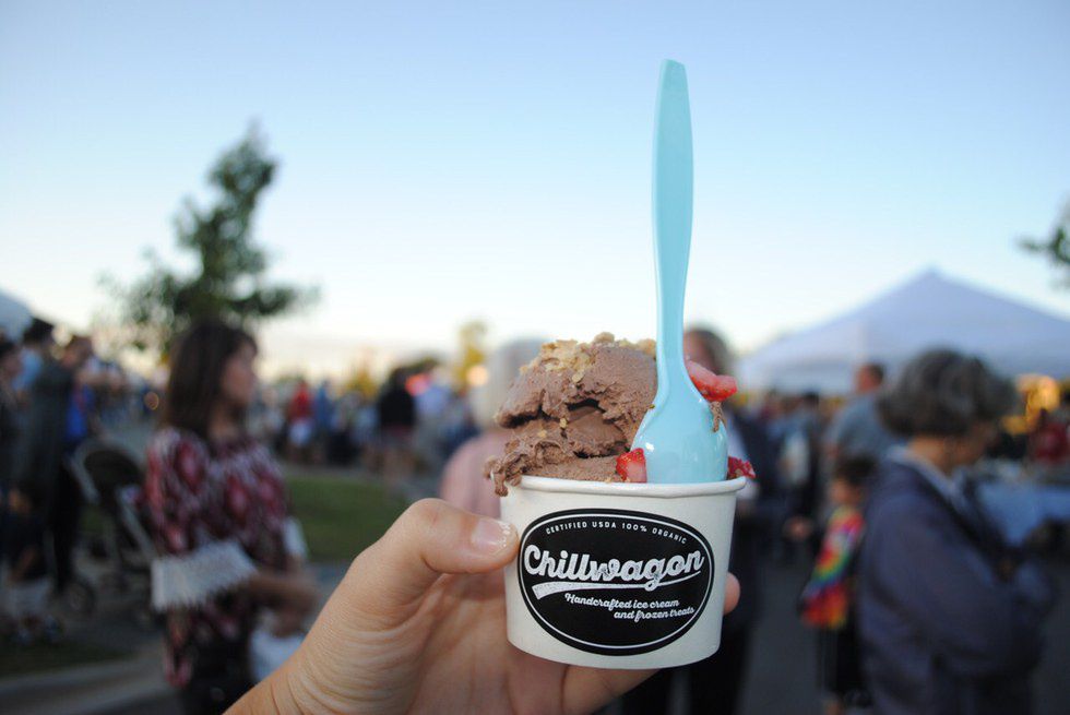 One of my all time favorite things was the food trucks that were there! I mean shopping at a farmers market can be exhausting so why not fuel up with some yummy food! The line for one of the trucks was long, so we decided to have dessert before dinner! We stumbled upon this adorable little old fashion ice cream truck- The Chillwagon. Oh my goodness, this was absolutely amazing. I topped my homemade chocolate ice cream off with fresh strawberries and graham crackers! It was so good I could have gone back for seconds and skipped dinner altogether, but my friend convinced me to go for the taco truck instead.