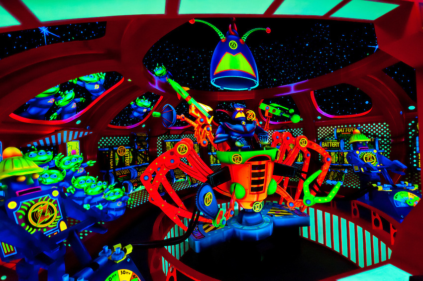Our final ride was on Buzz Lightyear’s Astro Blasters, a space-themed shooting dark ride that gives you full 360° control of your vehicle along with laser guns to fire at the many targets attached to various animatronics and props.